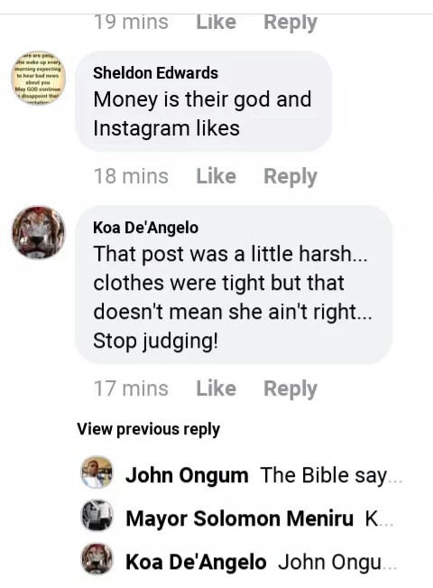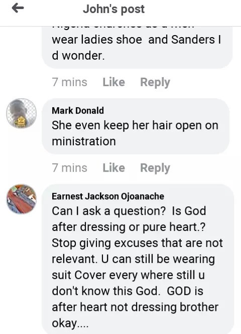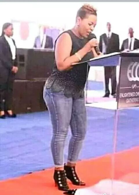 However photos of a woman preaching the word of God on the altar has gone viral and people gone on to Facebook to speak their minds and show their discontent on why she was dressed in such mannerless manner of wearing jeans to preach in the house of God.